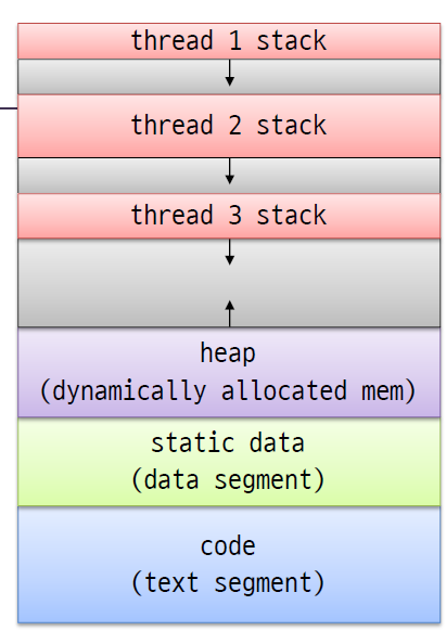글로벌 변수와 동적 할당된 객체에서 문제가 생긴다. 동적 할당된 객체는 힙에 쌓이고 공유되기 때문이다. 꼭 쓰레드 뿐 아니라 프로세스에서도 shared-memory 메커니즘으로 문제가 생긴다.