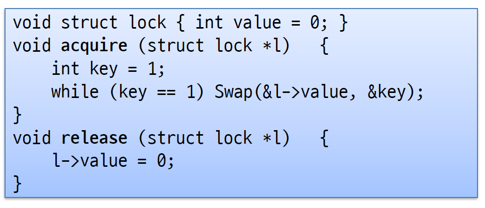 - 가장 큰 문제는 acquire에서 while문을 무한히 돈다는 것이다. 그 말은 CPU를 계속 사용한다는 것이다.