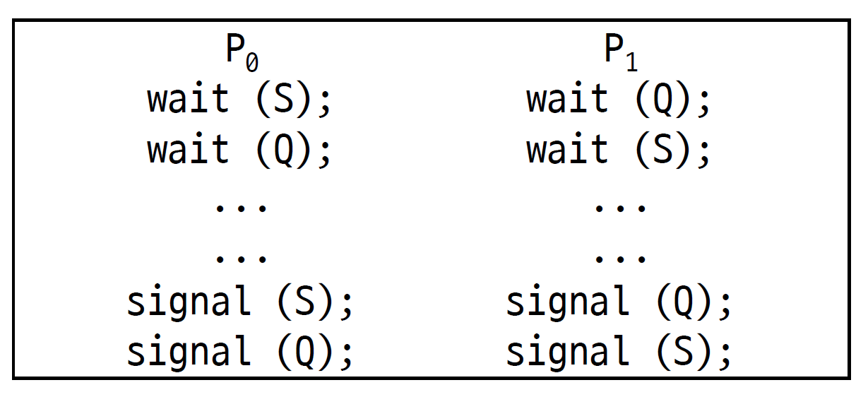 그런데 중간에 컨텍스트 스위치가 일어나면 P1은 S를 잡을 수 없다. 그리고 P0는 Q를 잡을 수 없다.