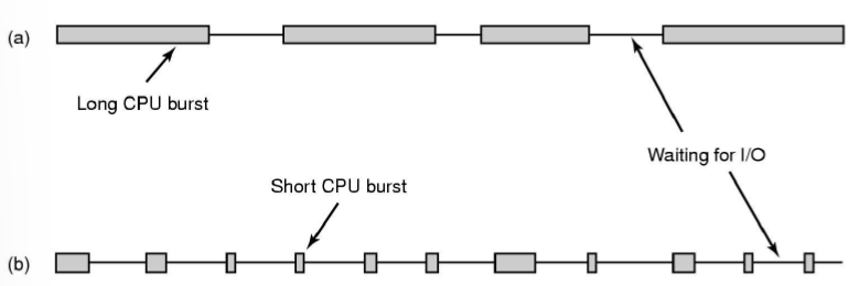 대부분의 프로세스는 CPU를 조금 쓰고, I/O를 많이 쓰는 프로세스가 훨씬 많았다.