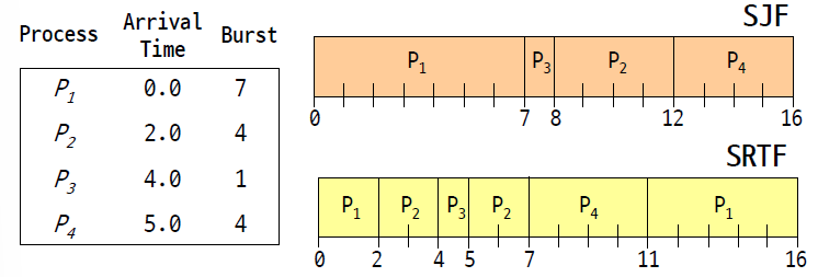 - SJF를 봐도 context switch가 적게 일어나고, SRTF는 많이 일어난다. time slice가 짧아지면 사용자 입장에서 부드럽게 도는 것 처럼 느껴지겠지만 실제 전체 시간은 늘어난다.