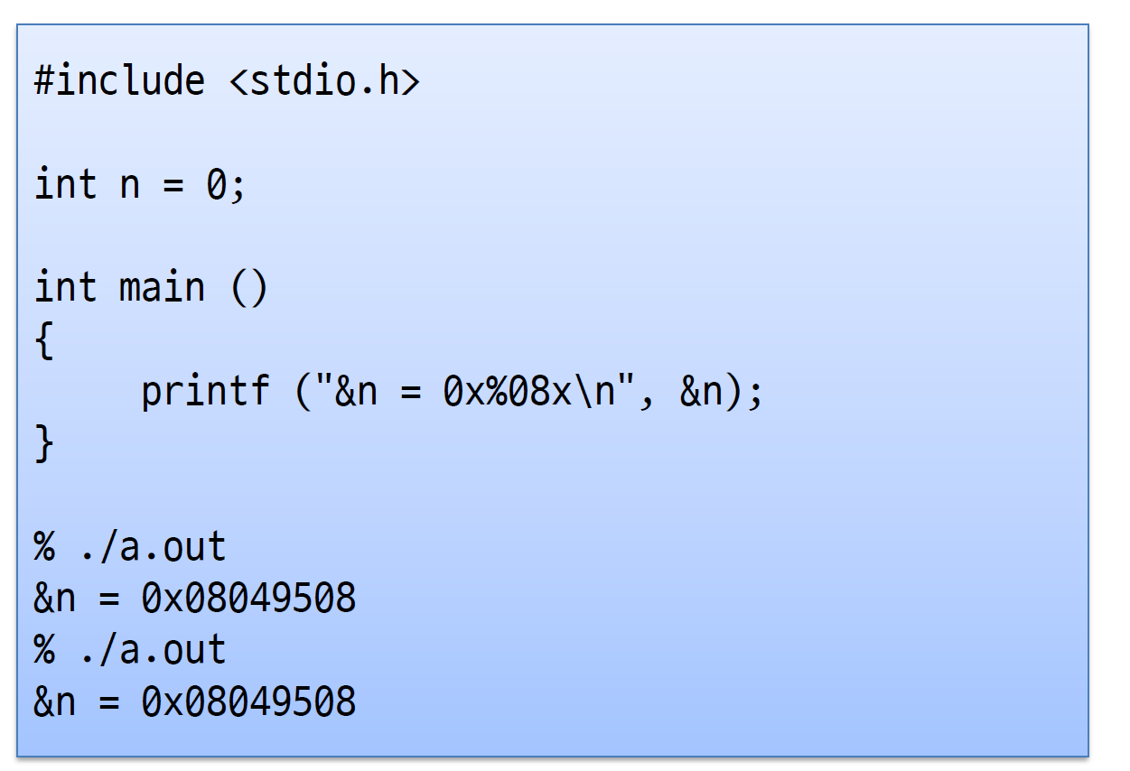 a.out을 계속 실행시켜도 n의 주소가 똑같게 찍히는 이유가 뭘까?