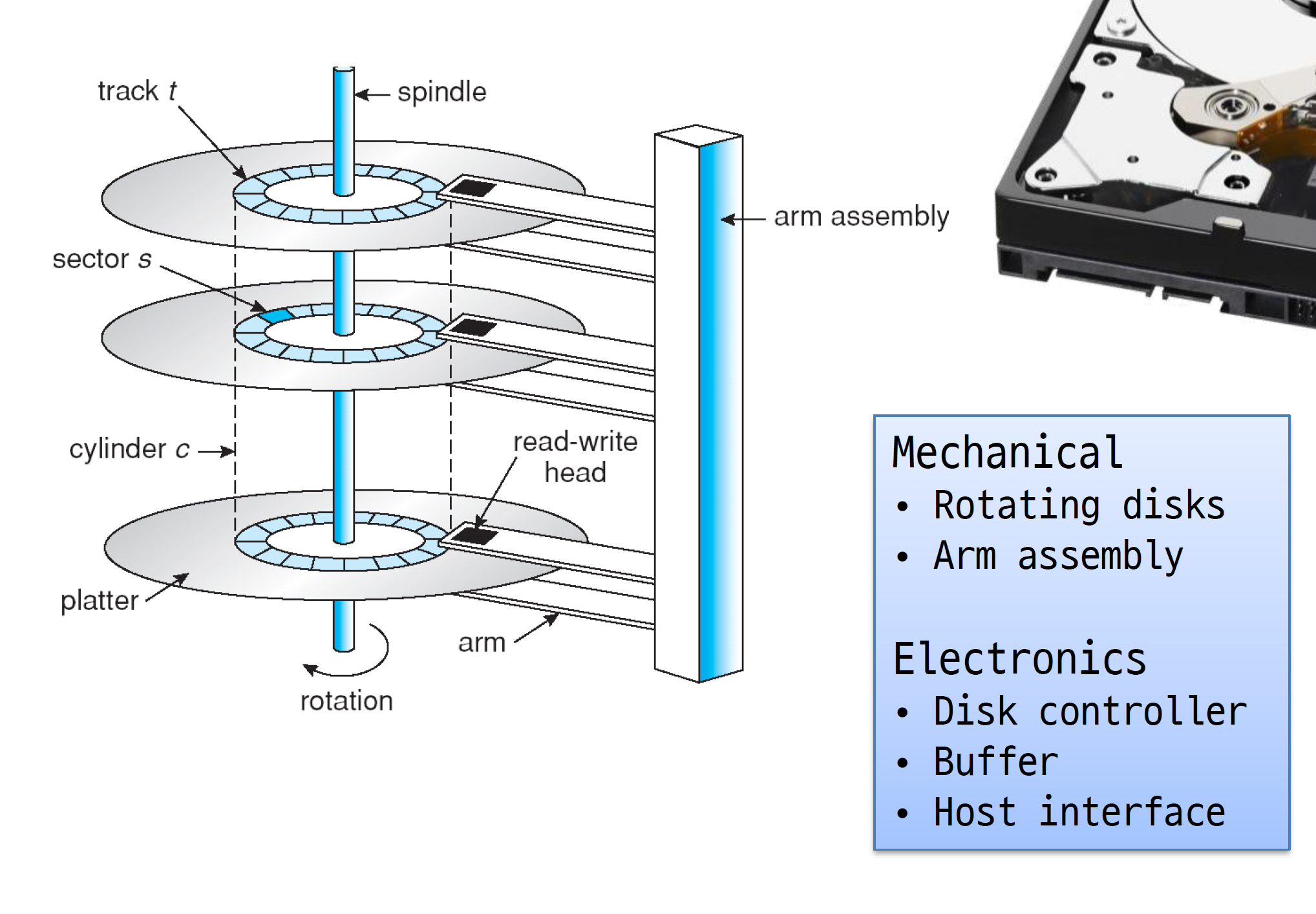 - 디스크 내부에 작은 CPU와 메모리를 가지고 있어서 알아서 알고리즘을 돌린다.