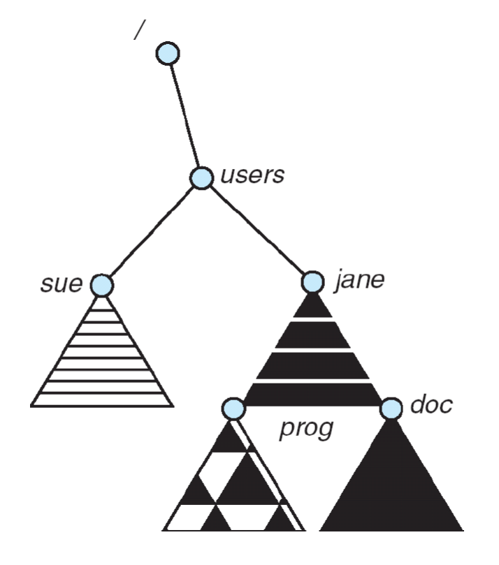 - 대부분의 파일 시스템은 멀티 레벨 디렉터리를 제공한다. 하나의 디렉토리 안에 여러 하위 디렉터리와 파일을 가질 수 있는 것이다.