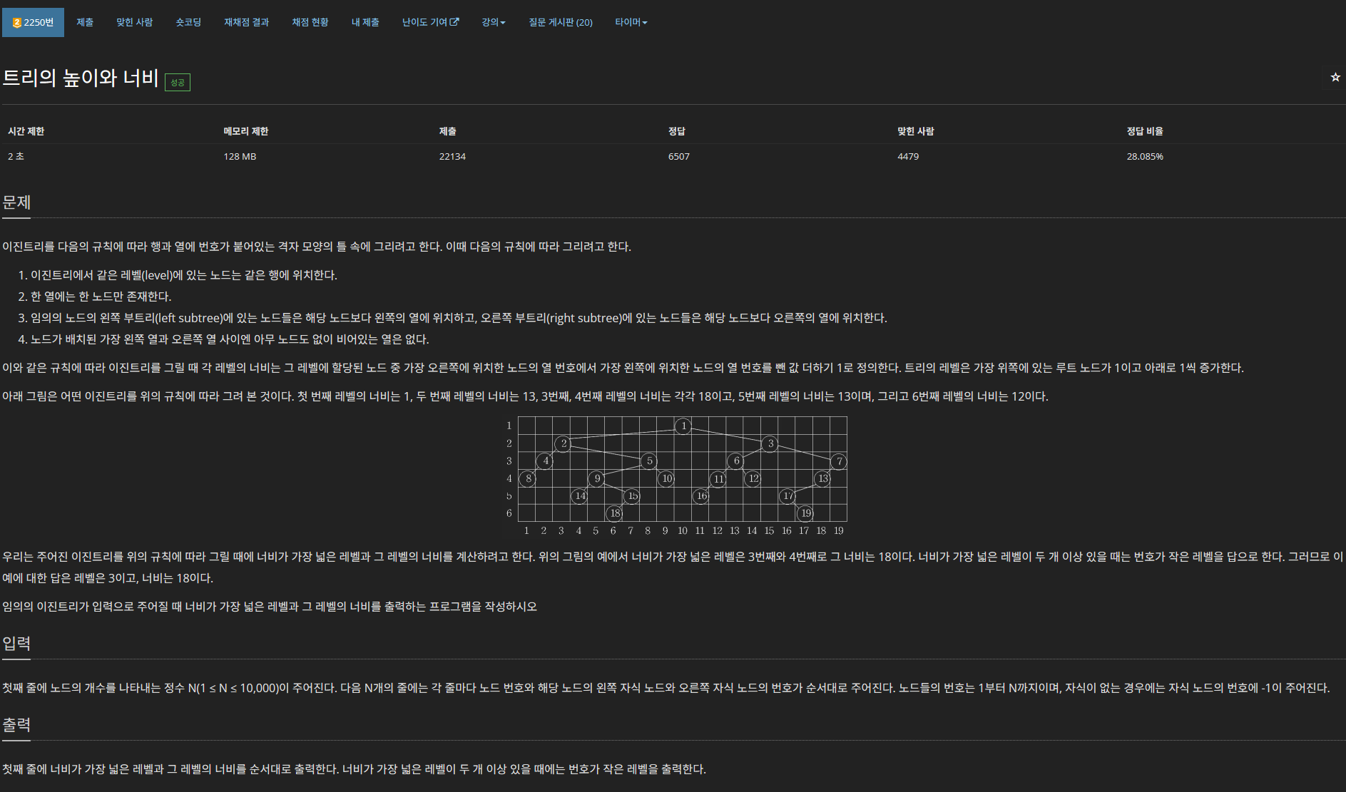 /** Tree 2250 트리의 높이와 너비 **/
