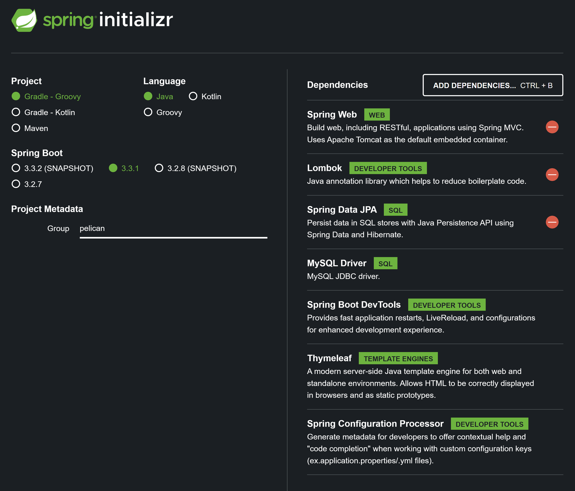 Spring Initalizer로 프로젝트를 생성했다. Spring Initalizer의 장점은 의존성 관리가 굉장히 쉽다는 것인데, 라이브러리의 버전을 서로 충돌없이 잘 초기화할 수 있어서 좋다.