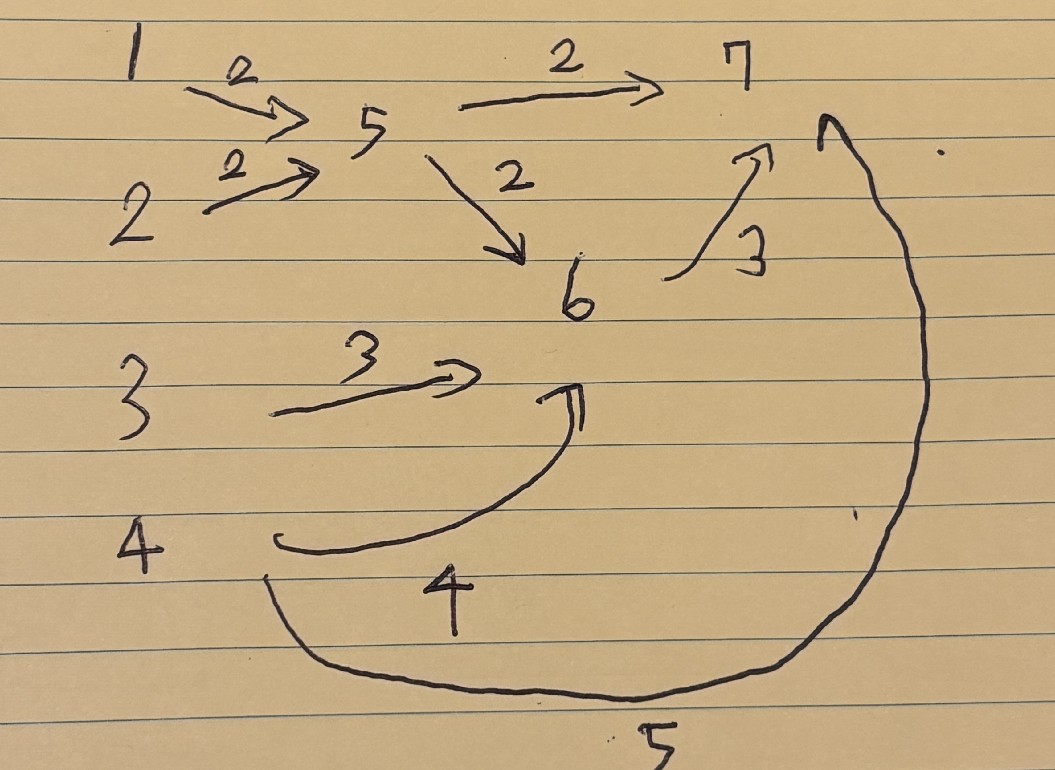 예를 들어 생각해 보자. 아래의 사진은 백준 예시를 그래프로 나타낸 것이다.