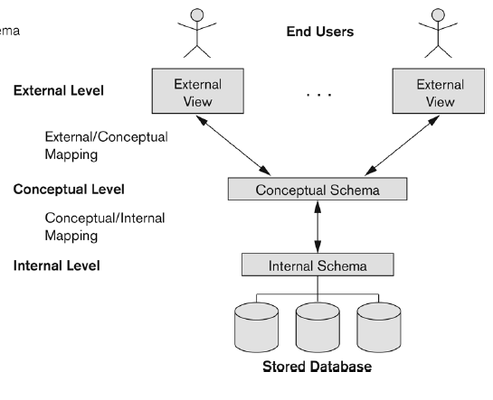 이 아키텍쳐는 데이터베이스를 세 가지 수준에서 정의한다.