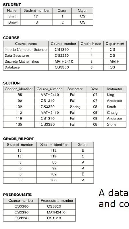- 데이터베이스의 연산은 retrievals(검색), updates(수정) 에 사용된다.