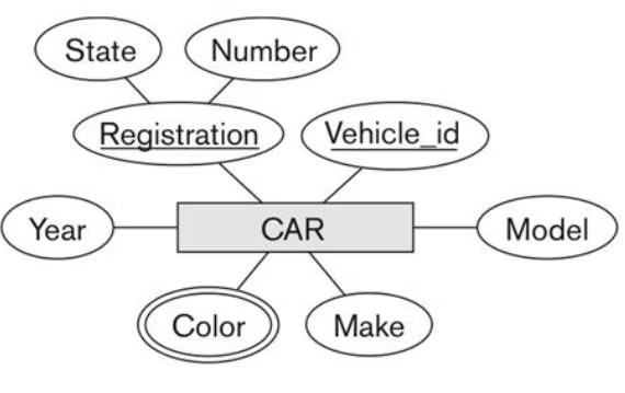 위의 ER 다이어그램에서 Registration이 composite key, Vechicle_id는 key, Color은 multi-valued를 의미한다.