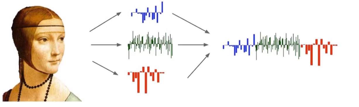 컴퓨터 비전 문제에서 보는 raw 이미지는 RGB 채널로 이루어져 있다. 각각 빨간색, 파란색, 초록색이 얼마나 포함되는지를 뽑고 순서대로 이어서 큰 벡터 형태로 표현할 수 있다.