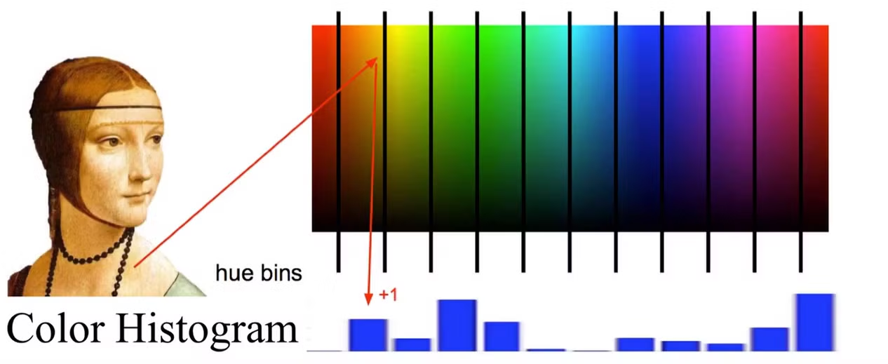 Color Histogram 방식으로도 이미지를 볼 수 있는데, 한 이미지가 일정한 색을 얼마나 가지고 있는지에 대한 통계적 요약이다.