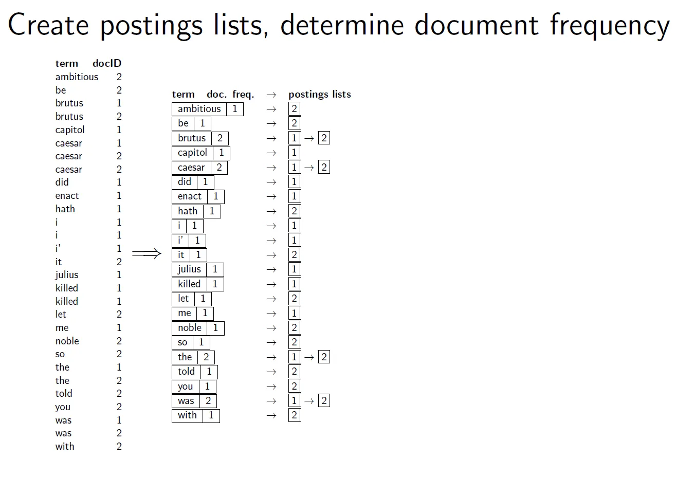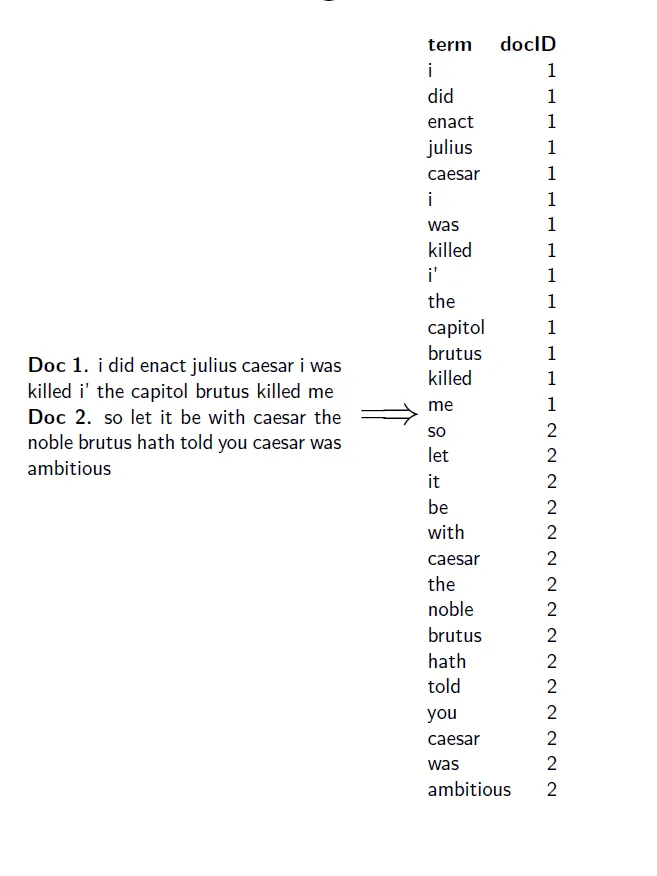 [Friends, Romans, countrymen. …], [So let it be with Caesar …] 이렇게 두 개의 문서에 대해 어떻게 inverted index를 만들 수 있을까?