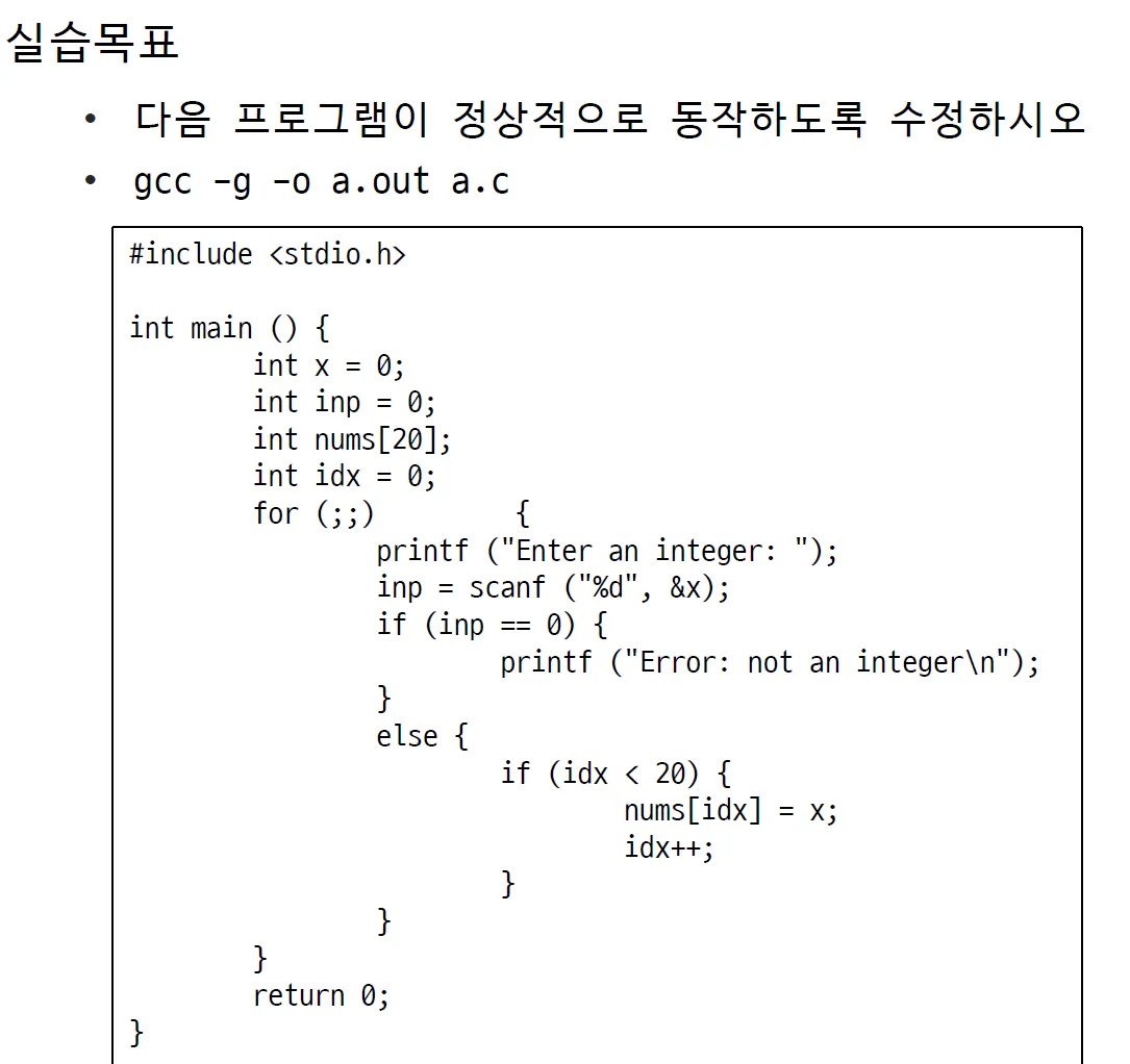 gcc 컴파일시 -g 옵션을 추가하고 -O 옵션을 제거해서 디버깅 할 수 있다.