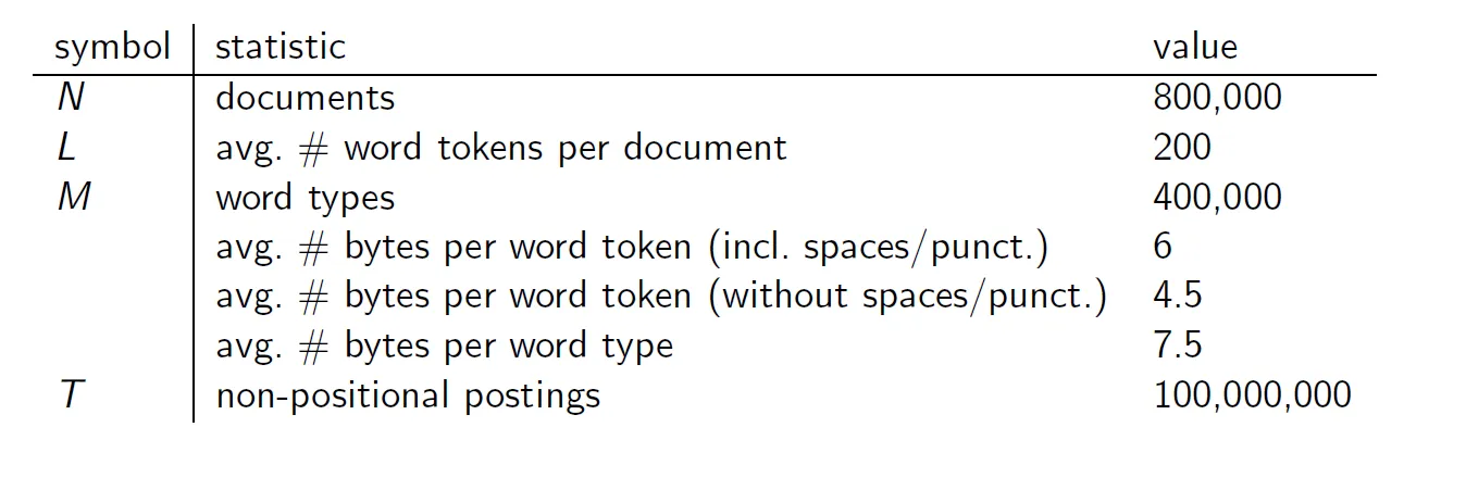 - Heap’s law를 사용하면 단어 길이의 평균 byte를 추정해서 토큰 수를 구할 수 있다.