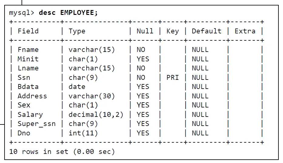 그림에서 틀린 부분이 있는데, PRIMARY KEY (Ssn),를 끝에 );를 붙여서 세미콜론으로 맺어줘야 한다.