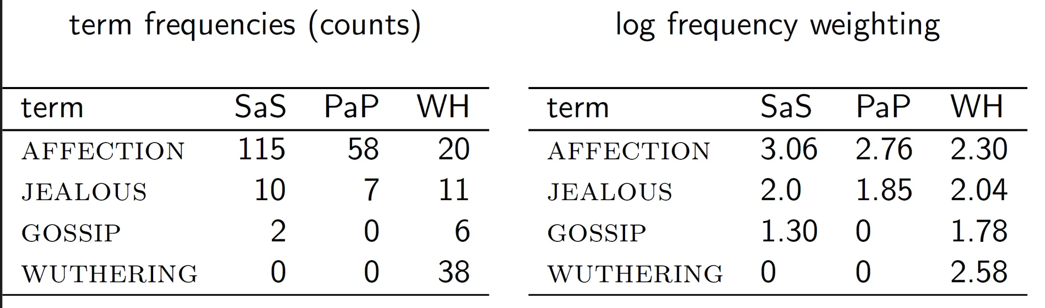 이 예제는 df와 이를 바탕으로 한 idf가 cf보다 weighting에 좋다는 것을 보여준다.