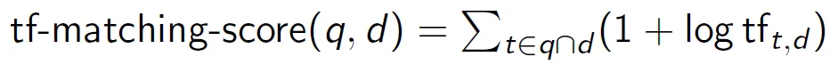 term t, document d, N은 전체 문서의 개수가 되고, 1+log tf 가 tf, log N/df 가 idf이다.