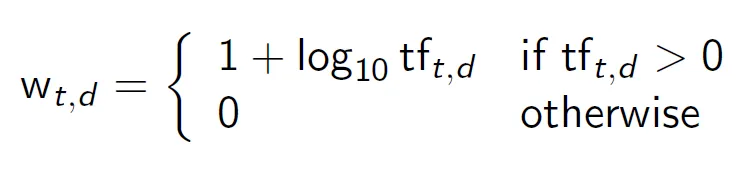 $$ w_{t, d} = (1+logtf_{t, d}) . log\frac {N} {df_t} $$
