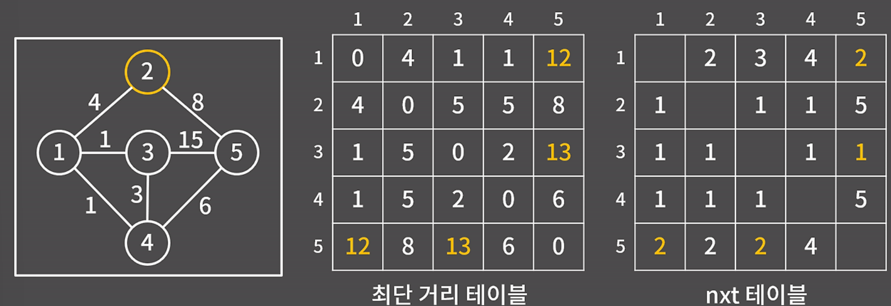 nxt 테이블은 최단 거리 테이블을 채우면서 같이 채울 수 있다.