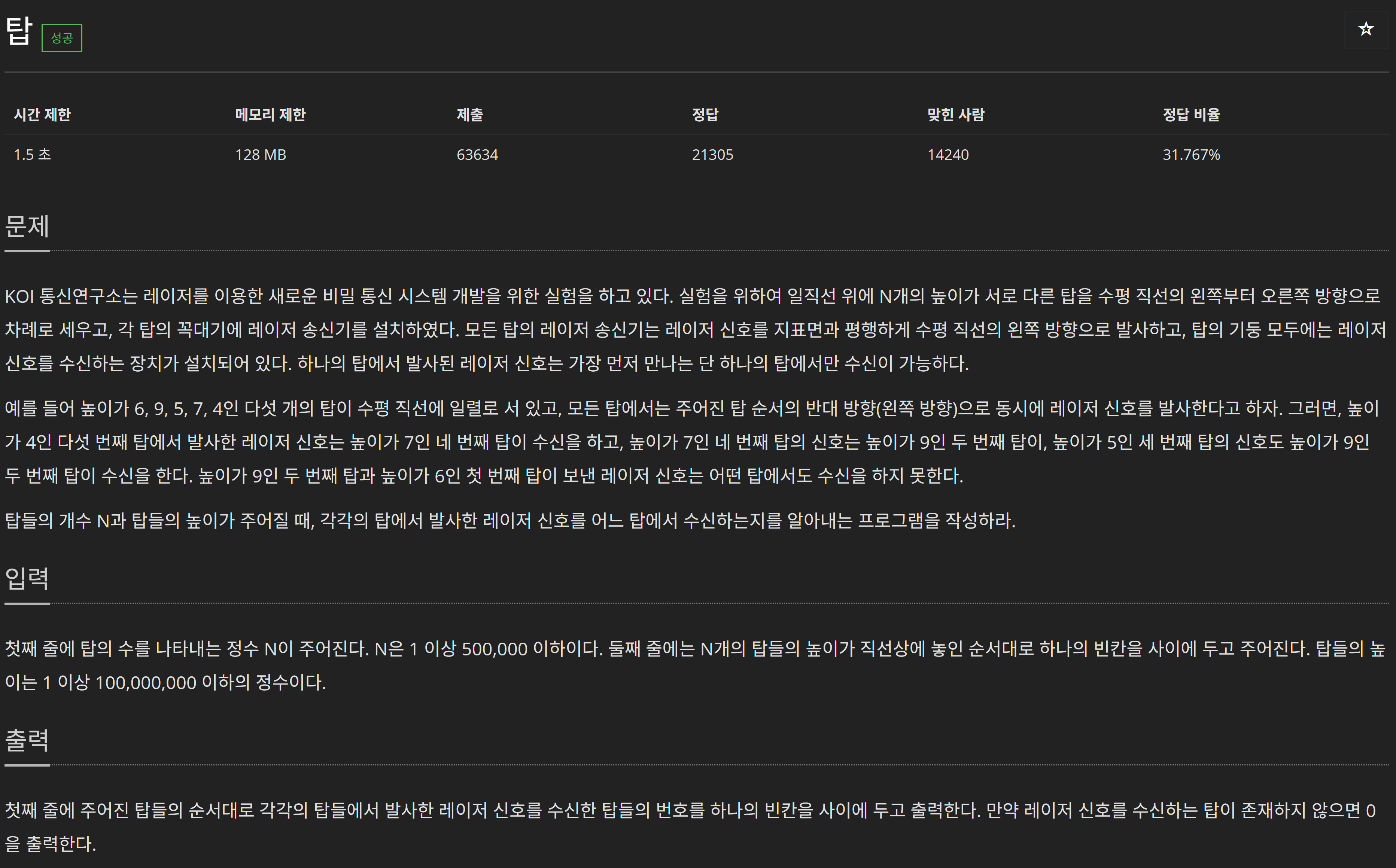 /** 스택 2493 탑 **/