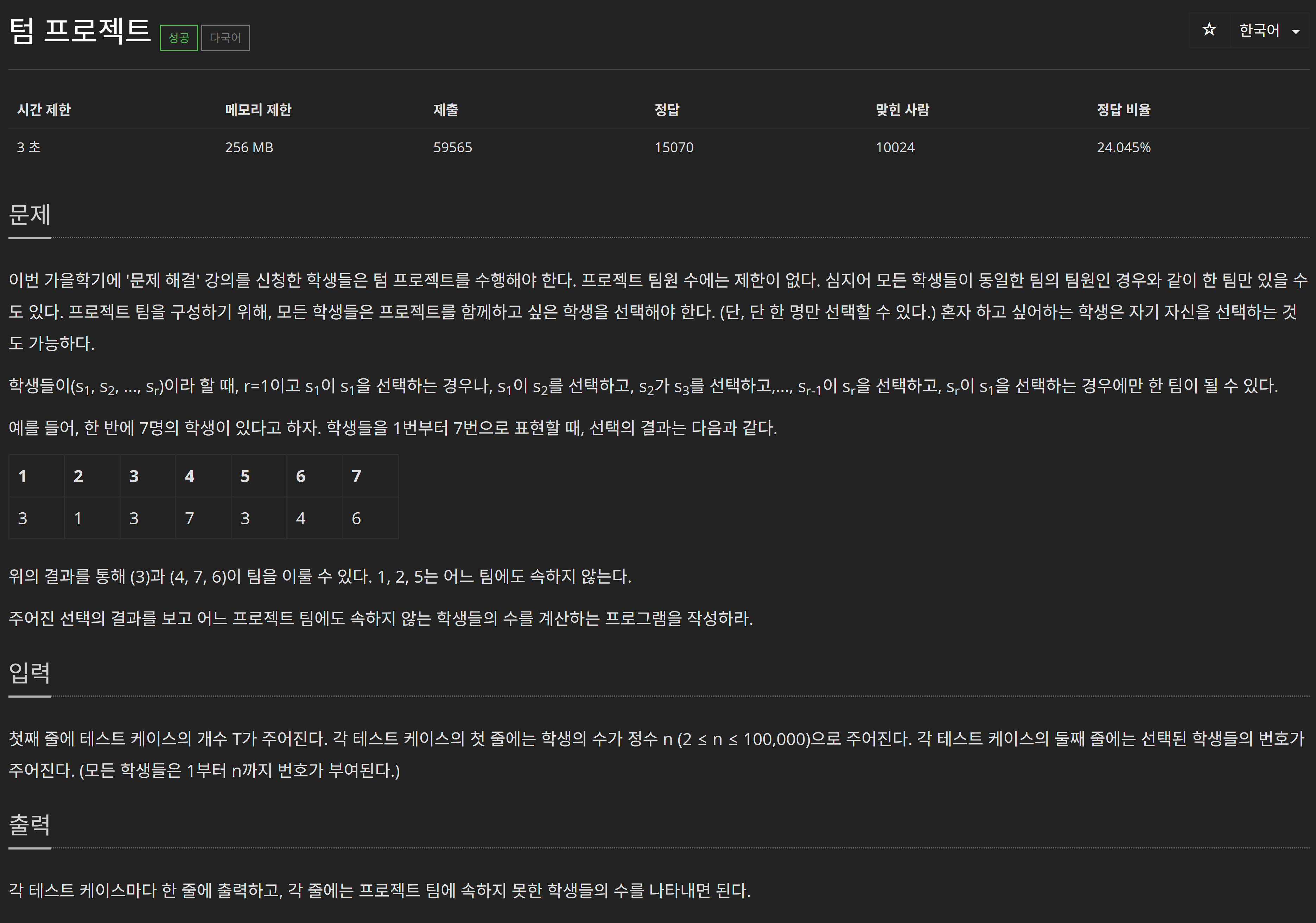 9466번: 텀 프로젝트