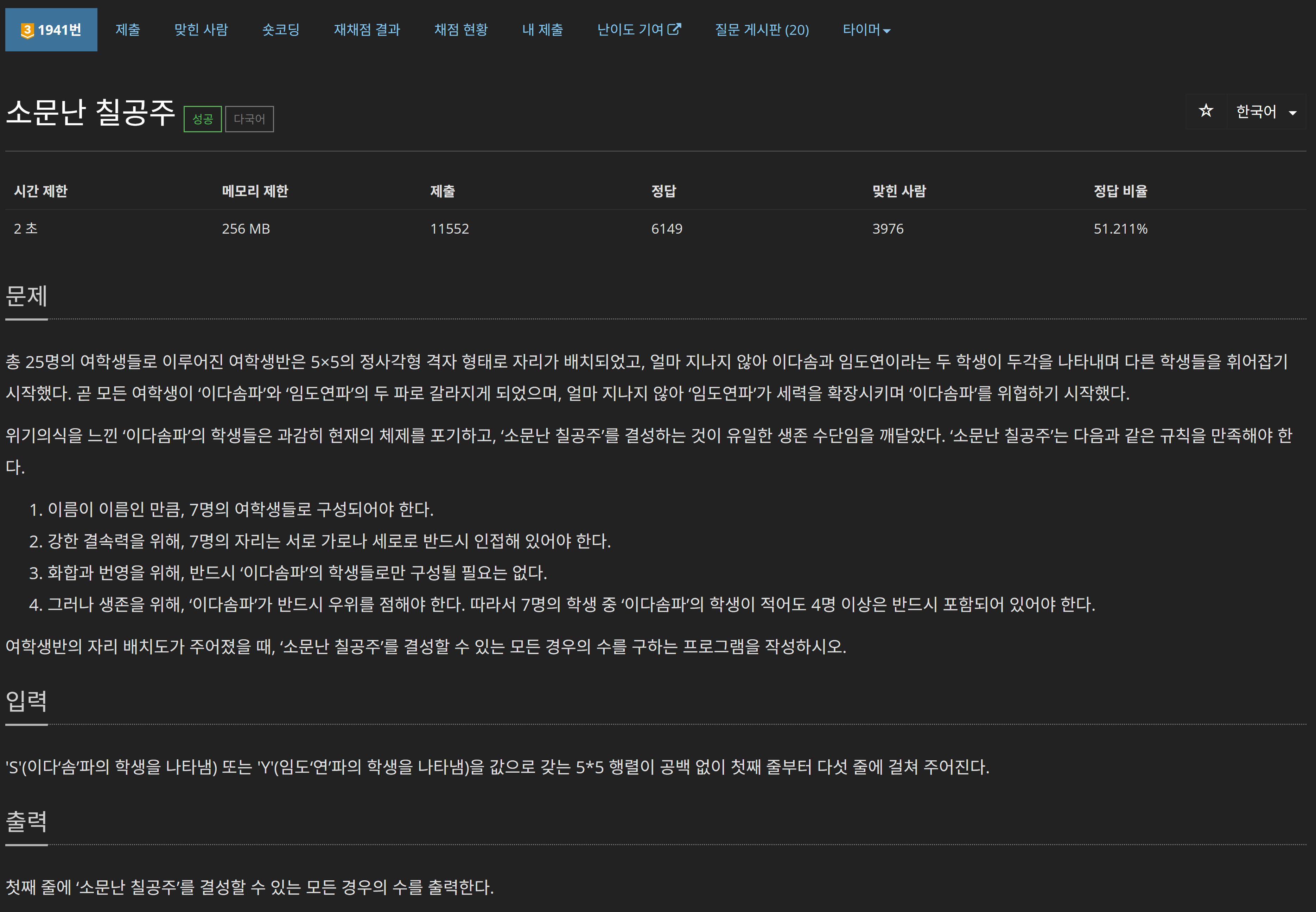 // cnt는 한 번의 bfs로 센 공주의 수이다. 7이 아니라면 공주들이 인접한게 아니다.